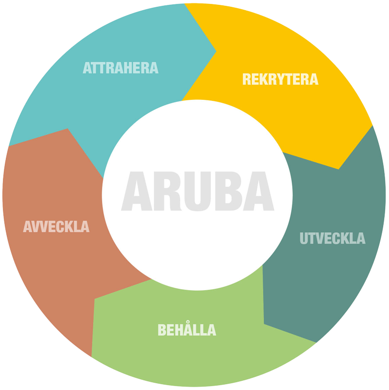ARUBA står för Attrahera – Rekrytera – Utveckla –Behålla – Avveckla och är ett smart och konkret verktyg som ger dig full koll och kunskap.