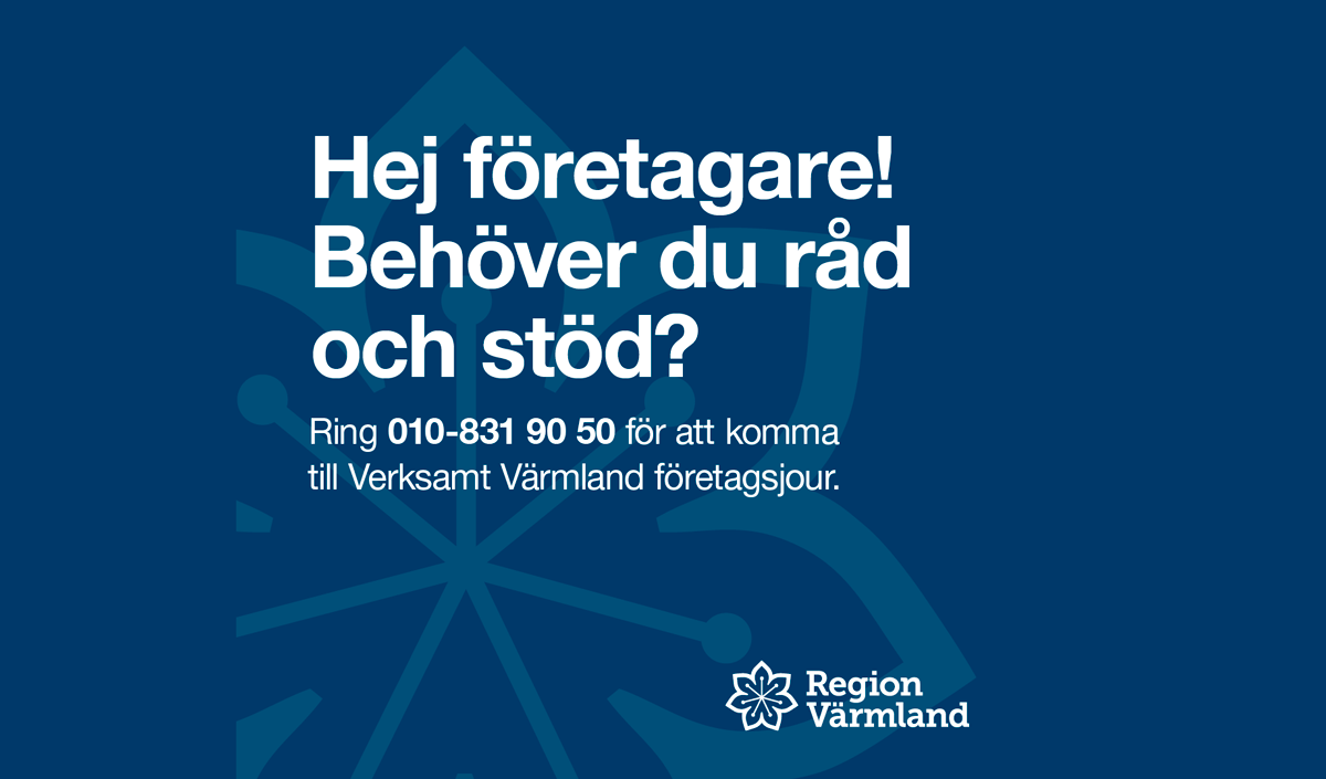Verksamt Värmlands företagsjour vägleder dig som företagare till de olika regionala- och nationella stödåtgärder som finns. Ring jourtelefonen måndag-fredag kl 09.00-16.00 på nummer 010-831 90 50.